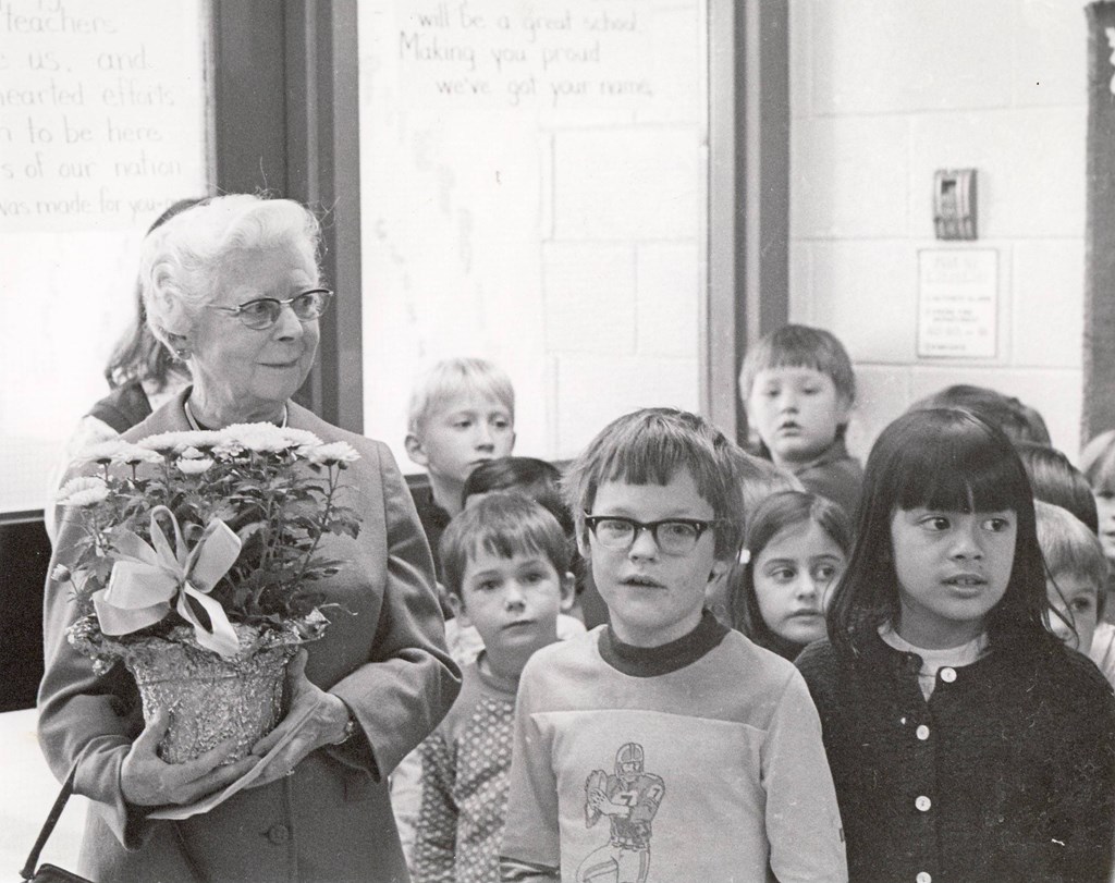 Katherine Therrien at her namesake school (Photo Credit Unknown)